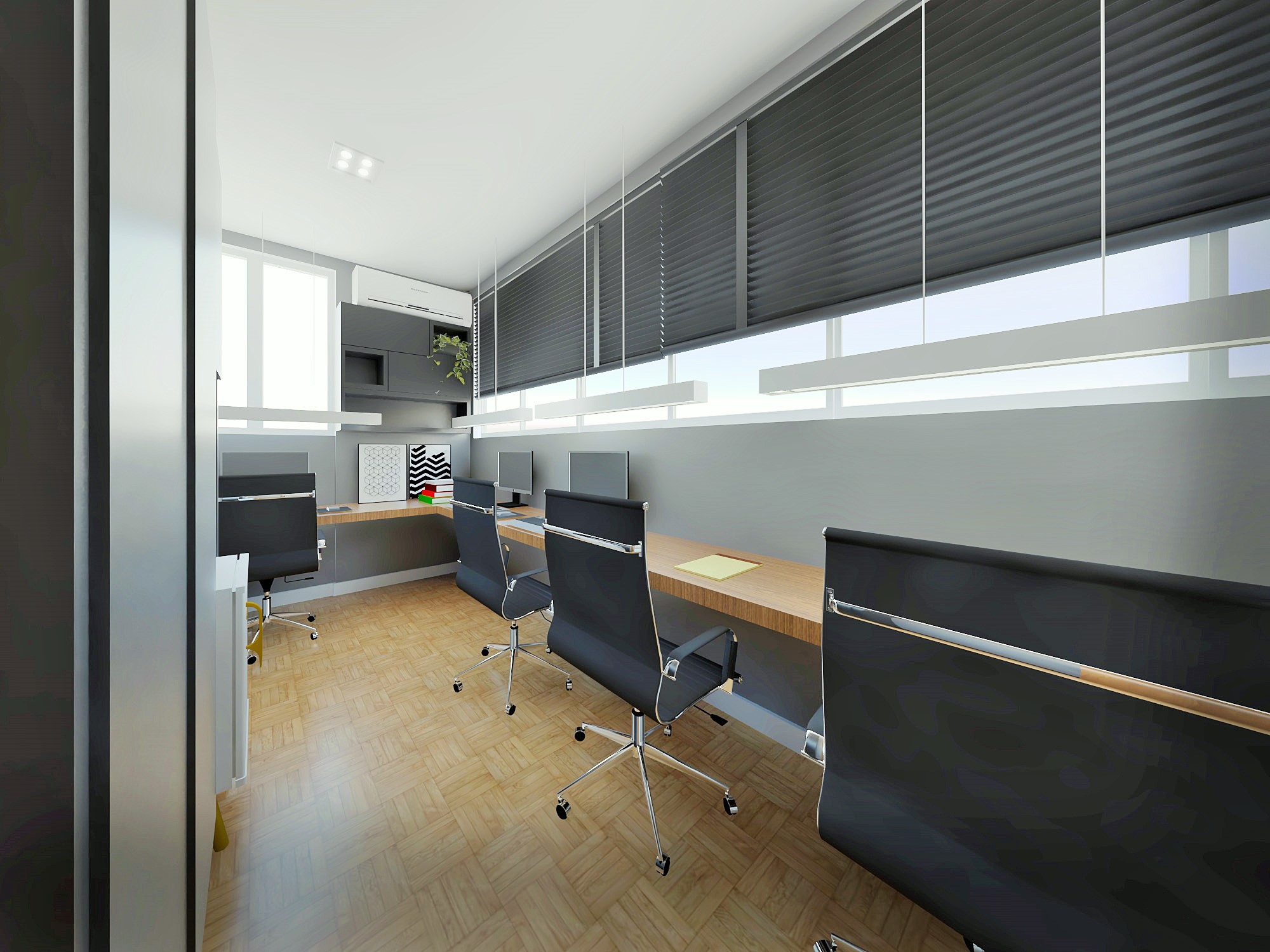Projeto de escritório de advocacia que traz muita madeira, preto e vidro trazendo leveza para os ambientes.